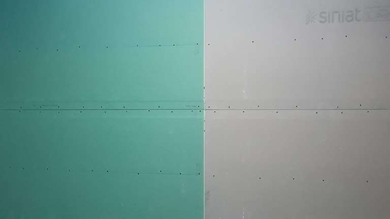 Bun. Ce-am făcut? Am montat vata bazaltică, folia antivapori, profilele de aluminiu, am etanșat străpungerile. Ce facem acum? Ne apucăm de montajul plăcilor de gips carton.