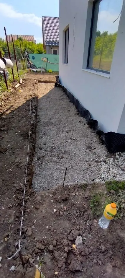 Aveam în plan să fac niște trotuare și alei betonate. Probabil, tot singur. Cine mai știe ce era in capul meu? Ideea e că m-am luat destul de în serios cu treaba asta. După săpături, am aruncat și niște pietriș în tranșeele pe care le-am făcut și am început să compactez pământul.
