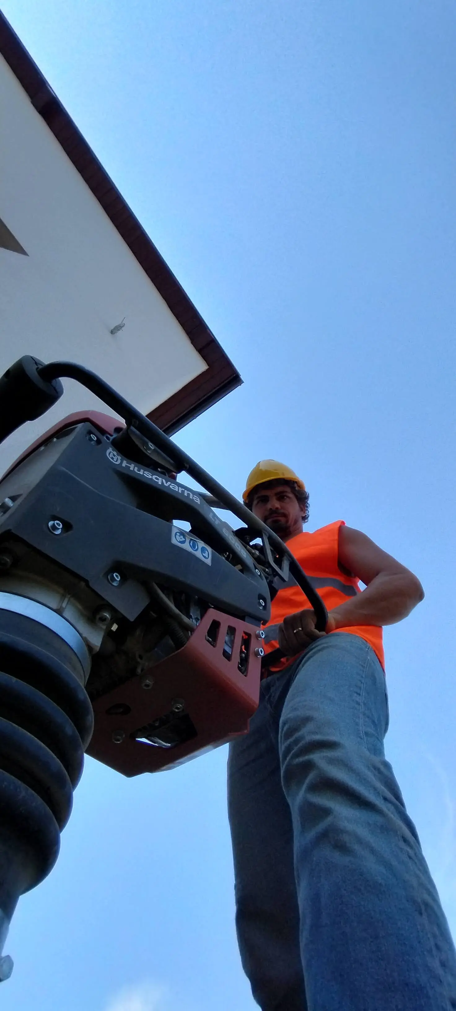 Am dat de pământ cu compactorul ăla cam jumătate de zi. 4-5 ore am dansat cu el prin curte. A ieșit treabă bună la final doar am tremurat din mâini și din cap până în următoarea zi, ca în desenele animate.